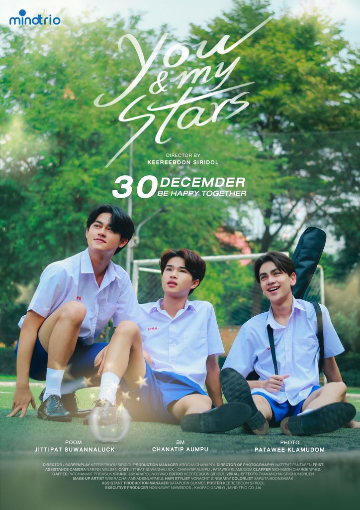 Der Kurzfilm „You And My Stars“ von Mind Trio mit BM Chanatip, Poom Jittipat und Photo Patawee in den Hauptrollen wird am 30. Dezember uraufgeführt. Was für eine Geschichte wird sich zwischen den drei Schülern entwickeln, wenn sich zwei Sterne einmal im Jahr miteinander verbinden?